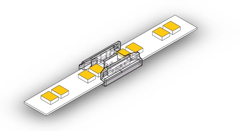 Mini Crystal LED strip connector is a transparent PC material connector, mainly suitable for IP20 COB & SMD strip with matching pads. It has the characteristics of reliable connection, invisible seamless lighting, perfect solution for aluminum profile application, and DIY connection without stripping.
