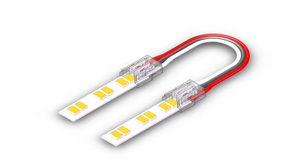 Mini Crystal LED strip connector is a transparent PC material connector, mainly suitable for IP20 COB & SMD strip with matching pads. It has the characteristics of reliable connection, invisible seamless lighting, perfect solution for aluminum profile application, and DIY connection without stripping.
