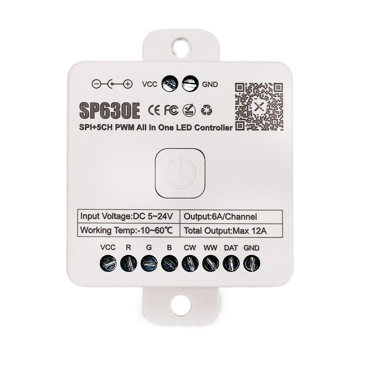 All in one led controller SP630E is compatible with multiple types of LEDs.It can work with 1/2/3/4/5CH W/CCT/RGB/RGBW/RGBCCT PWM and addressble LEDs, and it can also work with addressble+PWM combined LEDs: