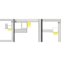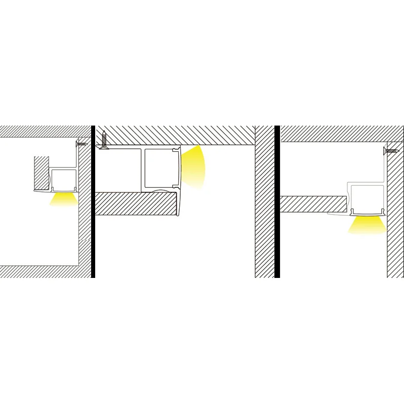 | YF-ALP071-S | ![]() | ![]() | Trimless recessed Aluminum Profile for plasterboard, Ceiling to wall Option: 1) PC diffused cover (opal) | Profile+PC milky white cover per meter |